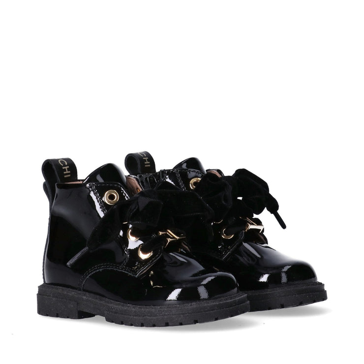 Stivaletti in vernice con lacci in velluto - F1A5-E0381-0286930-