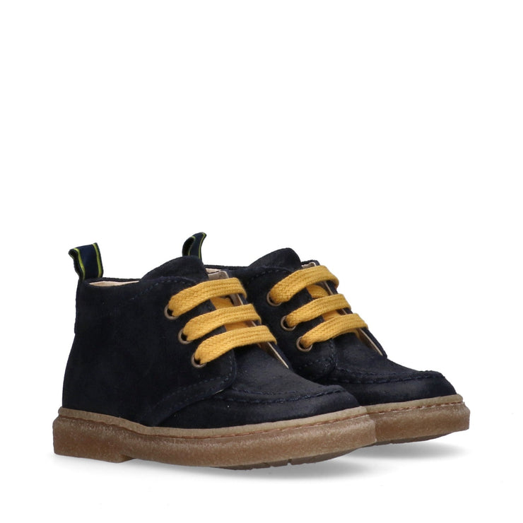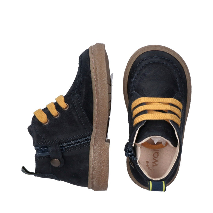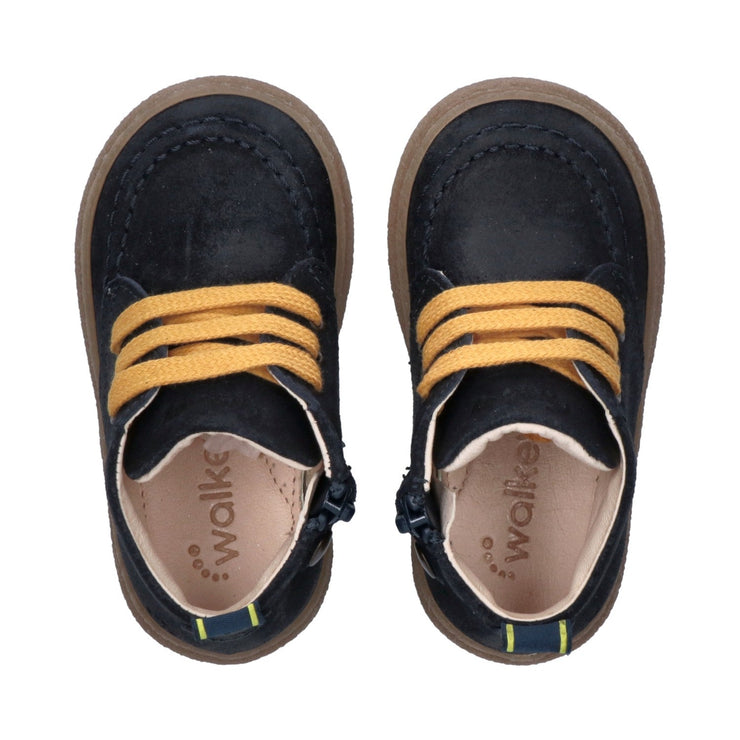 Come papà, ma in formato mini. Questi polacchini da bimbo in crosta blu con suola in para dal colore naturale e lacci color senape sono la scelta perfetta per chi vuole vestire il proprio piccolo con lo stesso stile deciso e autentico del papà. Il loro design senza tempo, unito a dettagli curati come la lavorazione paraboot, li rende ideali per ogni occasione: dalla passeggiata domenicale agli eventi più importanti. Ideali da abbinare a chinos, jeans o salopette, questi polacchini sono più di una scarpa: sono un piccolo passo verso grandi momenti condivisi.