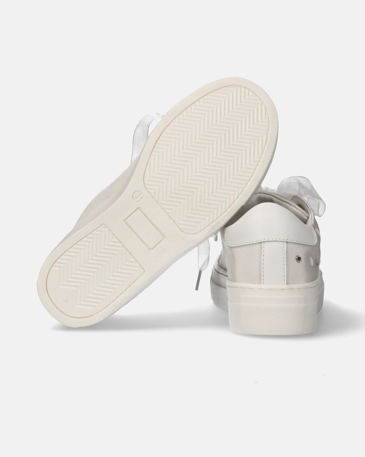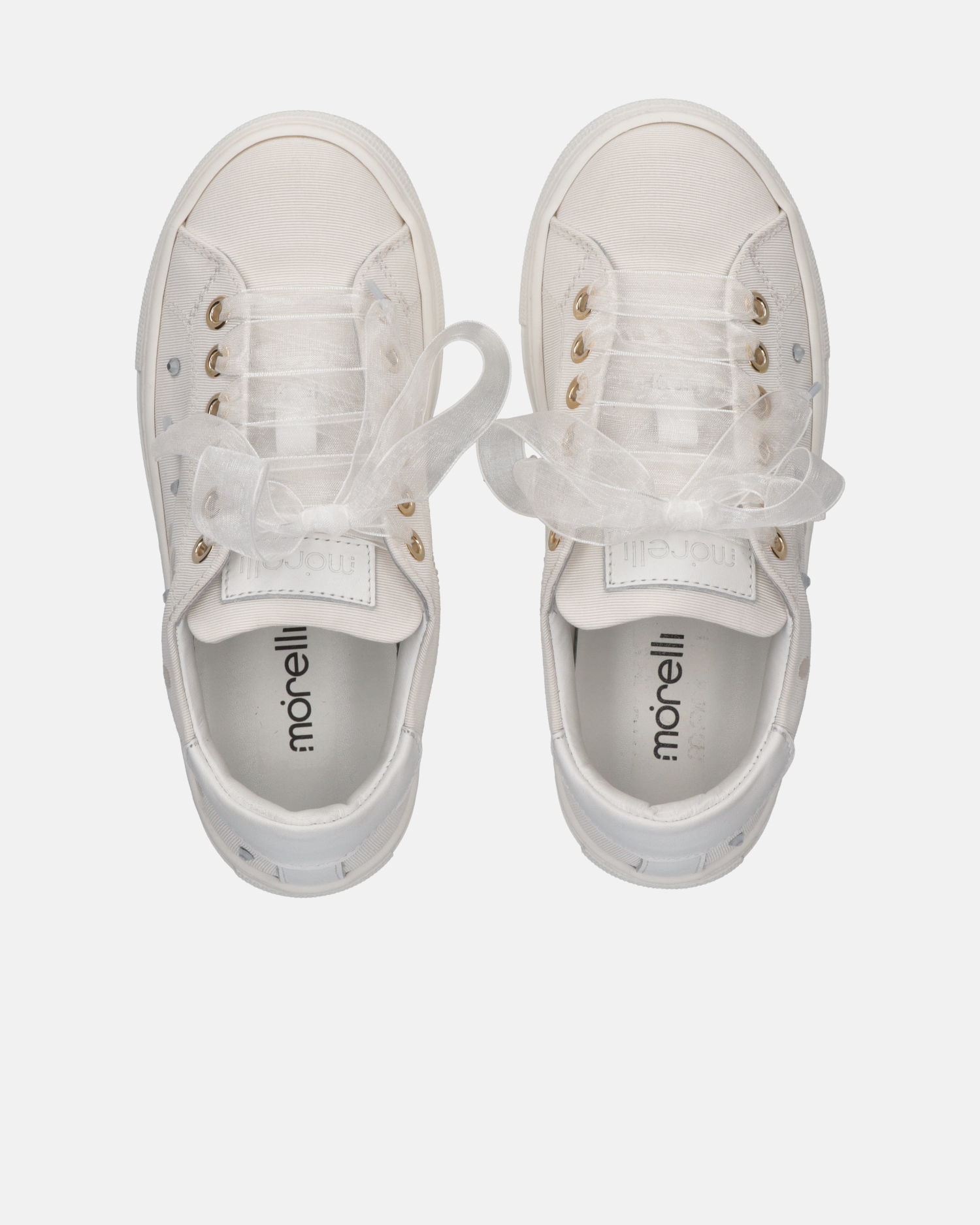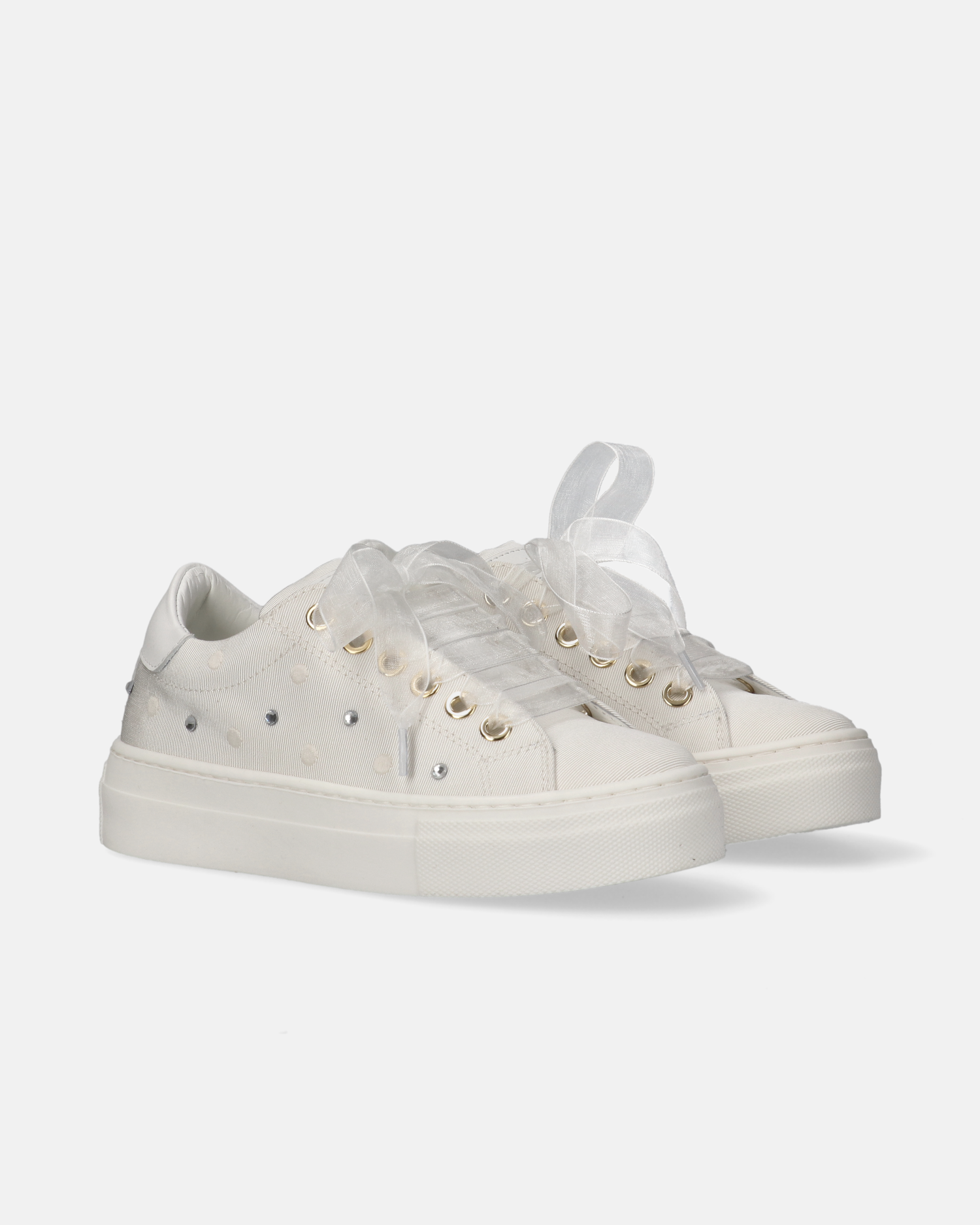 Sneakers da ragazza in tessuto con ricami e lacci in organza