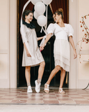 Sandali platform bianchi con monogramma EF dorato