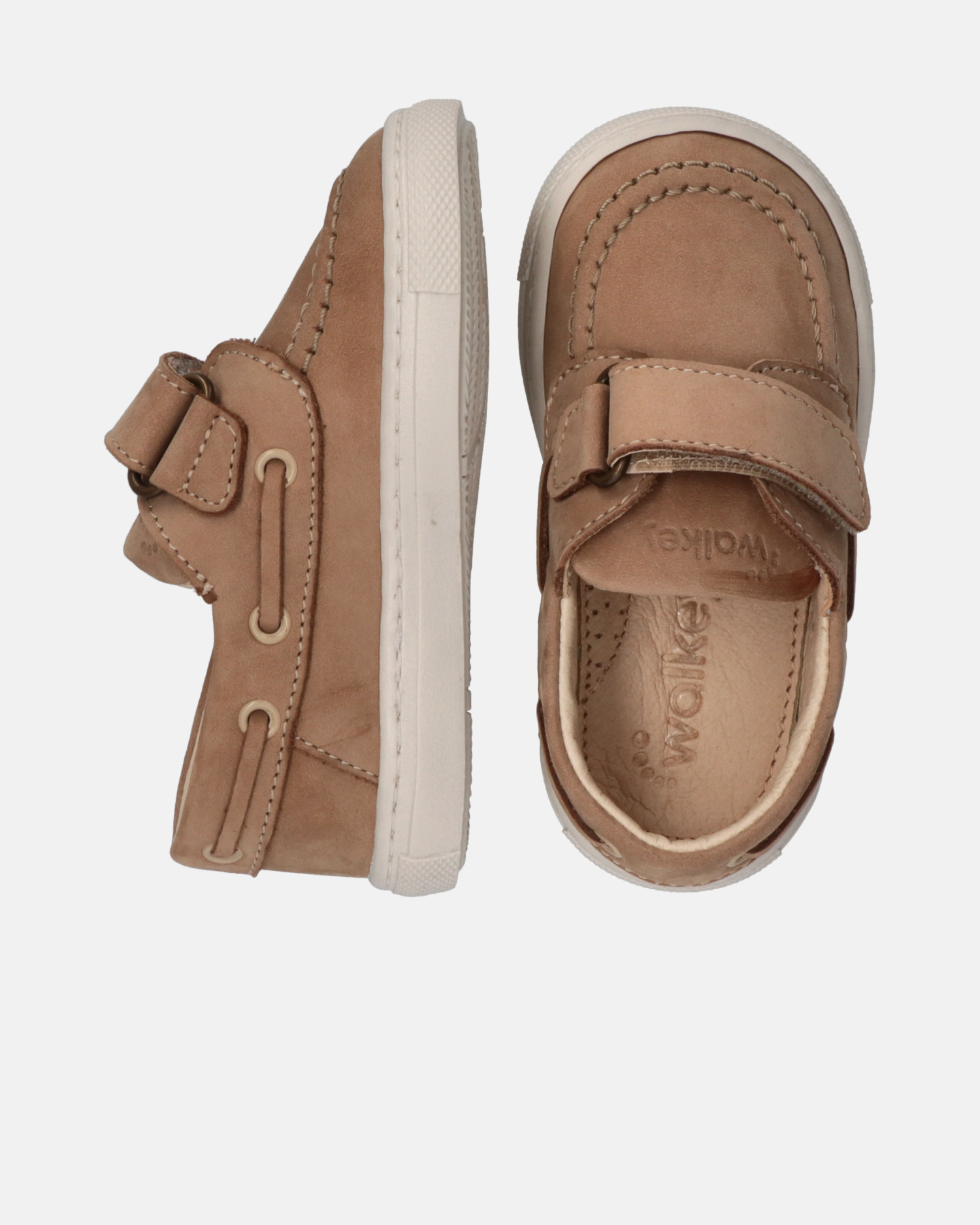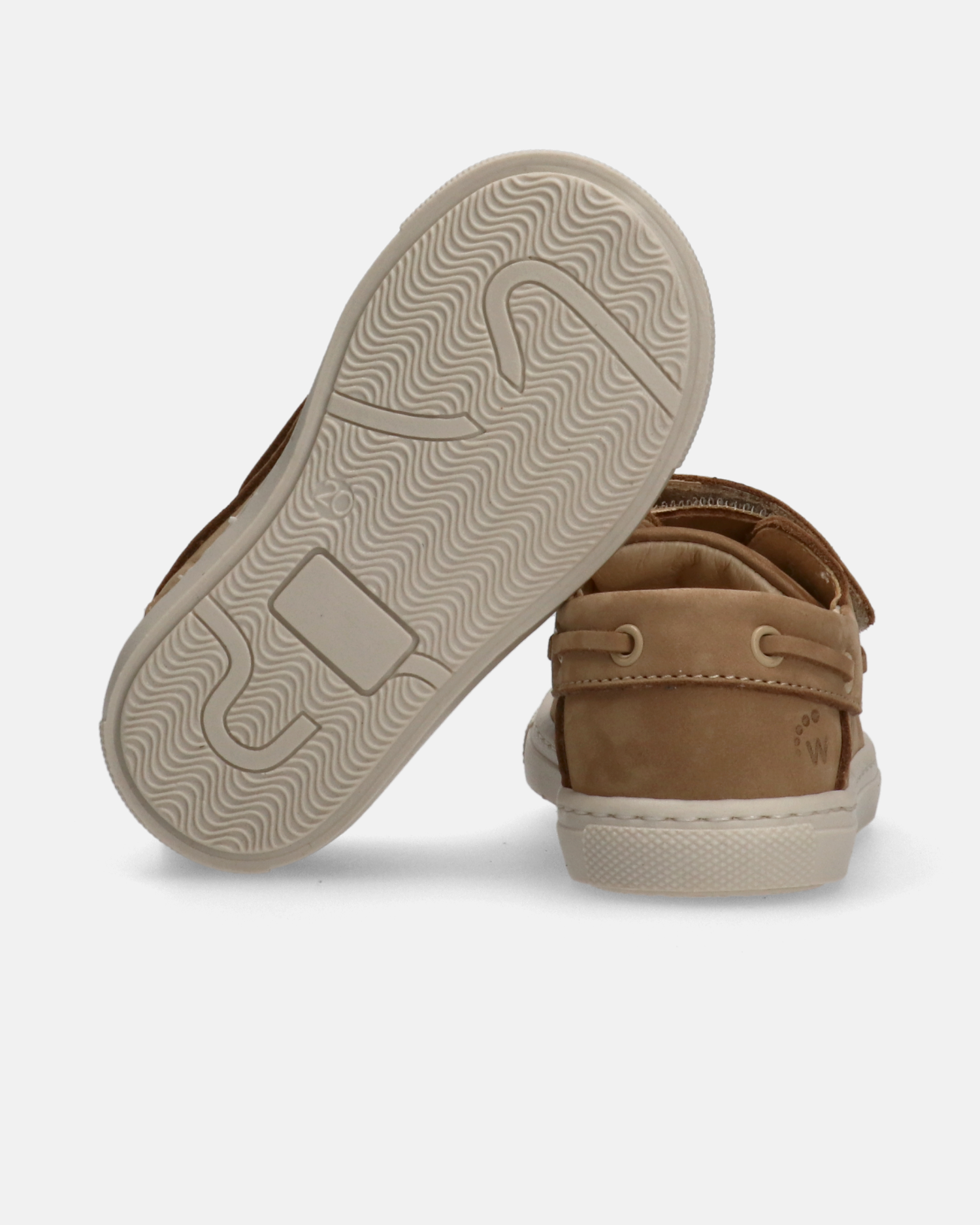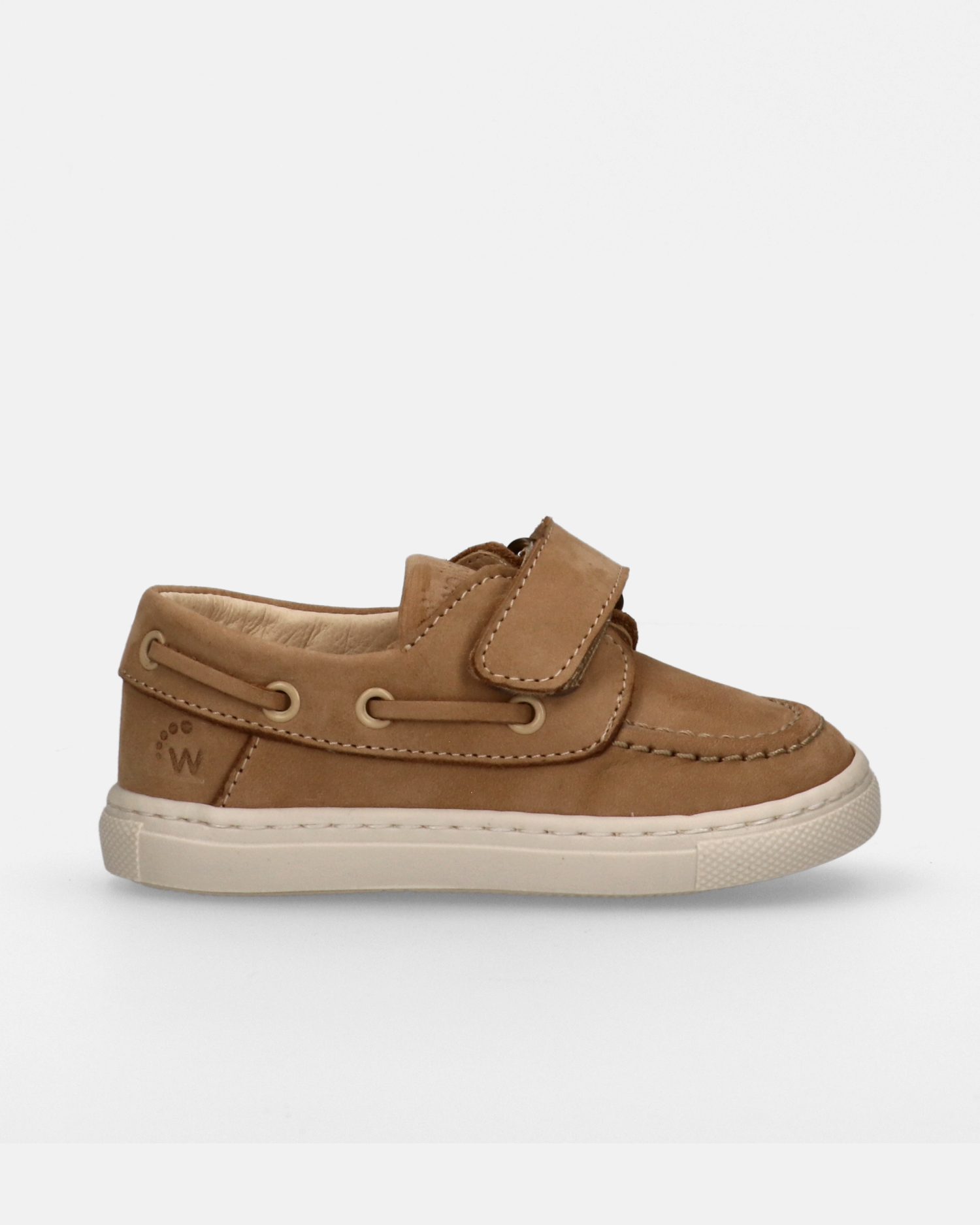 Lo stile senza tempo del papà rivive nei primi passi del tuo bambino. Questi mocassini in morbido nabuk, con raffinata lavorazione paraboot sulla punta, sono l'essenza dell'eleganza per le cerimonie e i look estivi con bermuda e polo. La lavorazione strobel garantisce una flessibilità estrema, mentre il cinturino in velcro offre una calzata pratica e sicura. Interno naturale con fodera metal free e soletta all'aloe vera per un benessere che dura tutto il giorno.